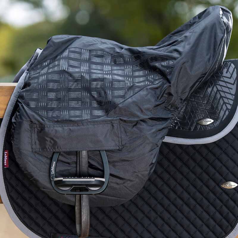 • Pokrowiec na siodło LeMieux Ride On GP chroni siodło przed deszczem, brudem i ścieraniem. Może być również używany podczas jazdy, co czyni go doskonałym wyborem, gdy na przykład musisz jeździć w deszczu, a jednocześnie chcesz chronić siodło przed wilgocią i błotem. Antypoślizgowa powierzchnia silikonowa na siedzisku przyczynia się do zwiększonej stabilności w siodle.