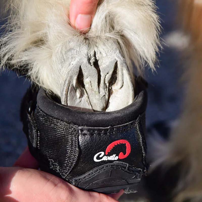 Znane buty dla koni Cavallo, nazywane również butami dla koni w pełnym kopycie, to para innowacyjnych, łatwych do zakładania i zdejmowania butów dla koni, które zapewniają skuteczną ochronę nagiego kopyta przed twardymi i ściernymi powierzchniami, a także lodem i śliskimi warunkami. Innymi słowy, buty dla koni Cavallo mają podobne właściwości do zwykłych żelaznych podków, ale z różnicą, że można je zakładać i zdejmować w dowolnym momencie. Są idealne, gdy twój koń bez podków potrzebuje przejść długi dystans po twardym podłożu lub gdy ma po prostu dodatkowo wrażliwe wkładki. Buty dla kopyt są również odpowiednie do użycia w przypadkach laminitis lub innych problemów z kopytami, lub jako tymczasowe rozwiązanie, gdy twój koń stracił podkowę.