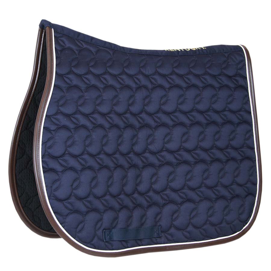 Podkładka Kentucky Absorb w kolorze granatowym, białym i brązowym to wszechstronny i stylowy wybór, odpowiedni zarówno do skoków, jak i ujeżdżenia. Sztuczny skórzany brzeg nadaje jej elegancki wygląd, nie przytłaczając, a brak logo zapewnia czystszy estetyczny wygląd. Dzięki specjalnemu krojowi i wzorowi, ta podkładka jest idealna zarówno do skoków, jak i do zawodów.