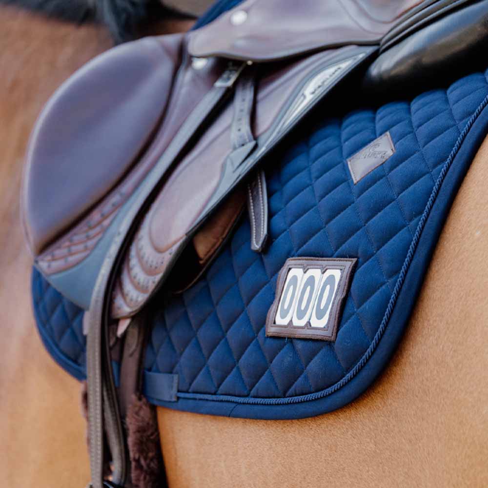 Podkładka pod sioło Kentucky Diamond Competition została zaprojektowana zarówno do zawodów, jak i treningu, skupiając się na funkcjonalności i stylu. Posiada odpinaną łatkę z sztucznej skóry, która pozwala na łatwe wyeksponowanie numeru startowego, co czyni ją praktycznym rozwiązaniem dla jeźdźców biorących udział w zawodach. Podkładka jest pikowana w wzór rybiej ości i wykonana z oddychającego materiału składającego się z 43% nylonu, 43% poliestru i 14% spandexu, co czyni ją idealną zarówno na zawody, jak i do treningu w domu.