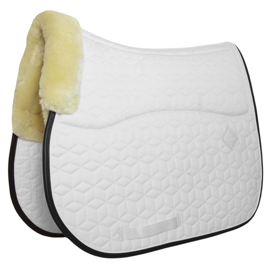 Czaprak ujeżdżeniowy od Kentucky został zaprojektowany, aby zapewnić maksymalny komfort Twojemu koniowi. Dzięki sztucznemu owczemu futerku wewnątrz i na kłębie, oferuje doskonałą amortyzację między grzbietem konia a siodłem. Czaprak pochłania wstrząsy i redukuje tarcie, co sprawia, że jest szczególnie odpowiedni dla koni z wrażliwą skórą. Elegancka krawędź z sztucznej skóry i biały szew nadają mu stylowy wygląd, a unikalny wzór pikowania sprawia, że ten czaprak wyróżnia się na tle innych. Istnieje również miejsce na haft, co pozwala na personalizację z własnym logo. Czaprak nie ma irytujących pasków do mocowania do siodła, tylko nylonowy pasek na popręg. Można go prać w pralce w temperaturze 30 stopni, jednak zalecamy pranie go jak najrzadziej, aby zachować jakość. Po prostu pozwól mu wyschnąć na świeżym powietrzu w słoneczny dzień, aby uzyskać najlepsze rezultaty.