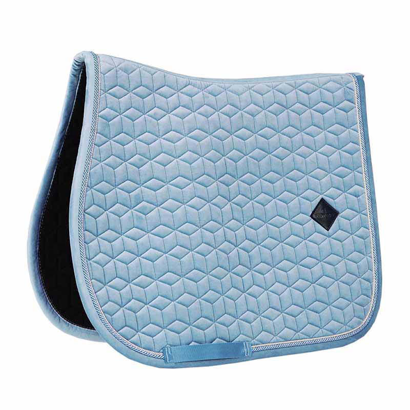 Elegancki czaprak wykonany z miękkiego weluru, przeznaczony do siodeł skokowych oraz wszechstronnych. Model wyróżnia się stylowym pikowaniem oraz podwójną lamówką, które nadają mu klasyczny i elegancki wygląd. Ozdobny detal z logo Kentucky z syntetycznej skóry podkreśla jego wysoką jakość wykonania.