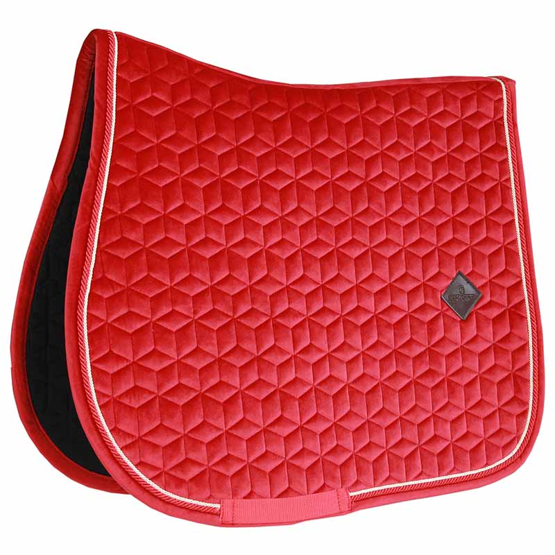 Elegancki czaprak wykonany z miękkiego weluru, przeznaczony do siodeł skokowych oraz wszechstronnych. Model wyróżnia się estetycznym pikowaniem oraz podwójną lamówką, które nadają mu klasyczny i stylowy wygląd. Ozdobny detal z logo Kentucky z syntetycznej skóry podkreśla jego wysoką jakość wykonania.