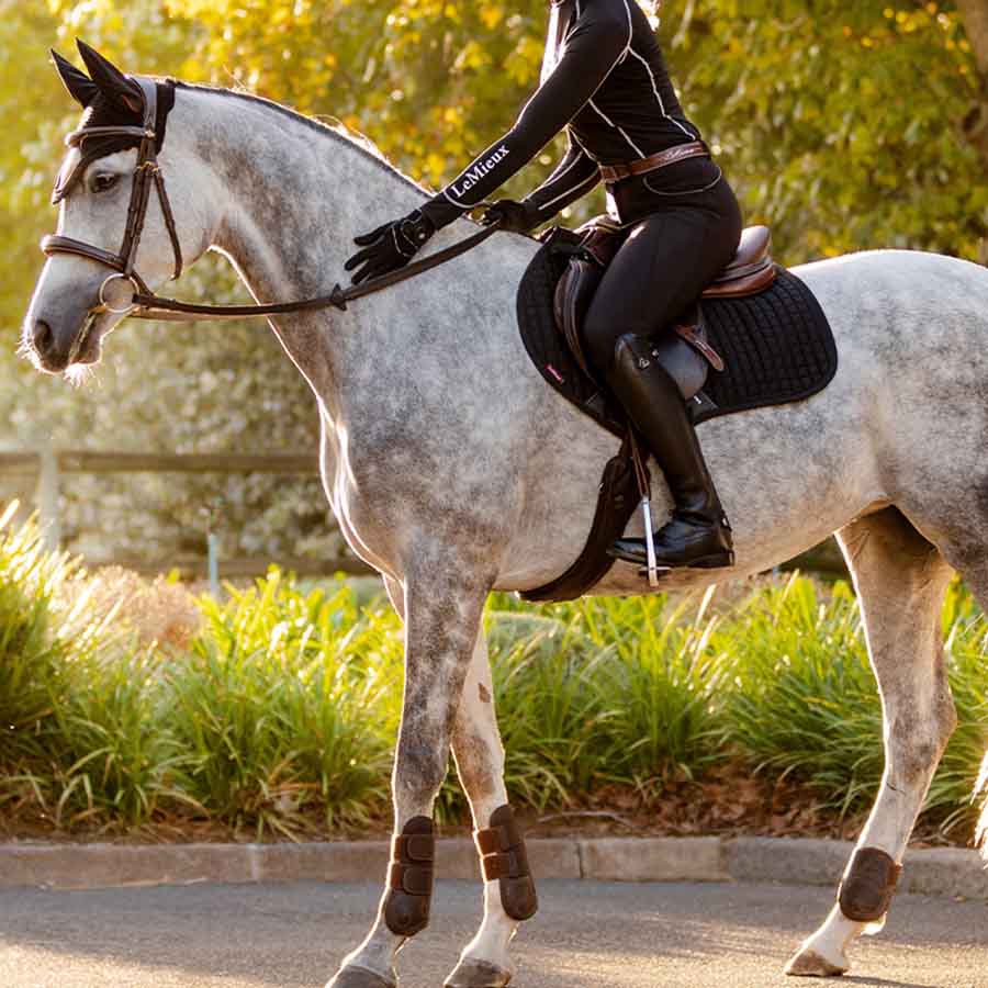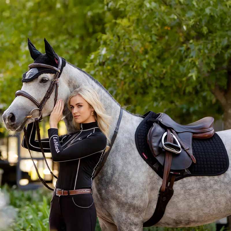 LeMieux Classic Close Contact Square to czarny, wysokiej jakości czaprak skokowy, idealny do codziennej jazdy i startów w zawodach. Wykonany z poliestru przypominającego zamsz, oddychającej wiskozy bambusowej, amortyzującej pianki i stabilnego wypełnienia polyfill – dla maksymalnego komfortu i funkcjonalności.