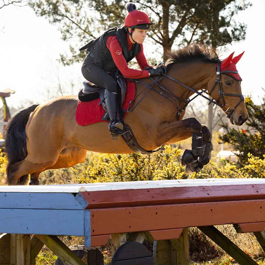 Wysokie wycięcie na kłąb, przemyślany kształt i elastyczne zaczepy na D-ring zapewniają anatomiczne dopasowanie, które porusza się z koniem. Zewnętrzna warstwa z efektem zamszu jest miękka i trwała, a podszycie z mieszanki bambusa skutecznie odprowadza pot, reguluje temperaturę i jest łagodne dla wrażliwej skóry.