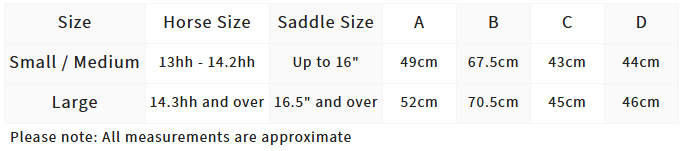 Czaprak posiada usztywniony brzeg utrzymujący kształt po wielu praniach, a także wzmocnioną strefę popręgu dla zwiększonej trwałości. Ukryte paski popręgu z wewnętrznymi kanałami oferują elastyczne możliwości mocowania i stabilność podczas całej jazdy.