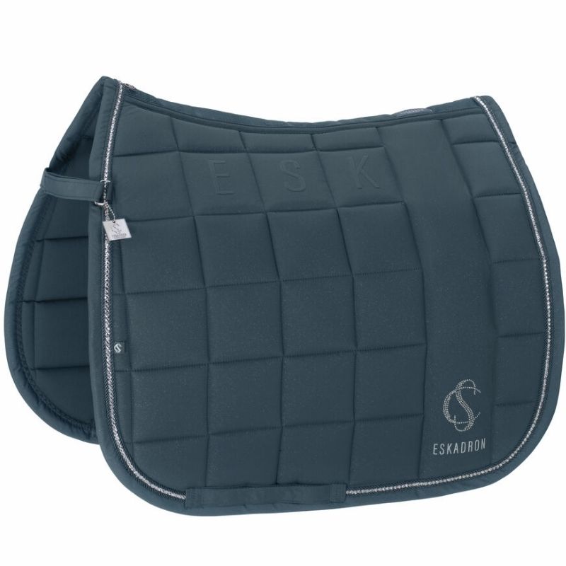 Czaprak ujeżdżeniowy Eskadron Biq Square Sparkle Classic Sports w zielonym kolorze charakteryzuje się dyskretnie połyskującą powierzchnią oraz wnętrzem cool-dry dla optymalnego komfortu. Jego obszerny, duży wzór w kratkę dodaje elegancji, a pionowe pole z logo CS po obu stronach podkreśla stylowy wygląd. Antypoślizgowa powierzchnia silikonowa pod siodłem zapewnia stabilność.