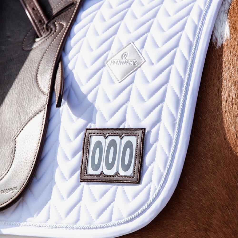 Czaprak ujeżdżeniowy Fishbone Competition został zaprojektowany z myślą o zawodach i treningach. Posiada odpinaną naszywkę z sztucznej skóry, która pozwala na wskazanie numeru startowego, co jest praktyczne podczas zawodów. Dzięki stylowemu pikowaniu w rybią ość i braku pasków do siodła oraz użyciu jedynie pasków podogoniowych, czaprak ten oferuje czysty i funkcjonalny wygląd. Wykonany jest z oddychającego materiału, składającego się w 43% z nylonu, 43% z poliestru i 14% z spandeksu, co czyni go idealnym zarówno do zawodów, jak i do treningów w domu. Dodatkowo, czaprak ma subtelne logo ze skóry w tym samym kolorze, co czaprak, co dodaje eleganckiego akcentu. Można również wymienić naszywkę z numerem na logo Kentucky, jeśli zajdzie taka potrzeba. Zaleca się pranie w pralce w 30 stopniach, ale należy prać tak rzadko, jak to możliwe, aby zachować jakość. Po prostu wysusz go na zewnątrz w słoneczny dzień, aby uzyskać najlepsze rezultaty.