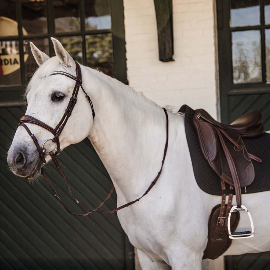 Czaprak ujeżdżeniowy Fishbone od Kentucky charakteryzuje się unikalnym pikowaniem w kształcie rybiej ości i wykonany jest z oddychającego materiału. Zapewnia doskonałą amortyzację pomiędzy grzbietem konia a siodłem, chroniąc przed tarciem. Czaprak nie ma pasków siodłowych, tylko paski pod brzuchem, co nadaje mu schludny i prosty wygląd. Subtelne logo ze skóry w tym samym kolorze co czaprak dodatkowo podkreśla elegancki wygląd, a jeśli zajdzie potrzeba, jest wystarczająco miejsca na haft.