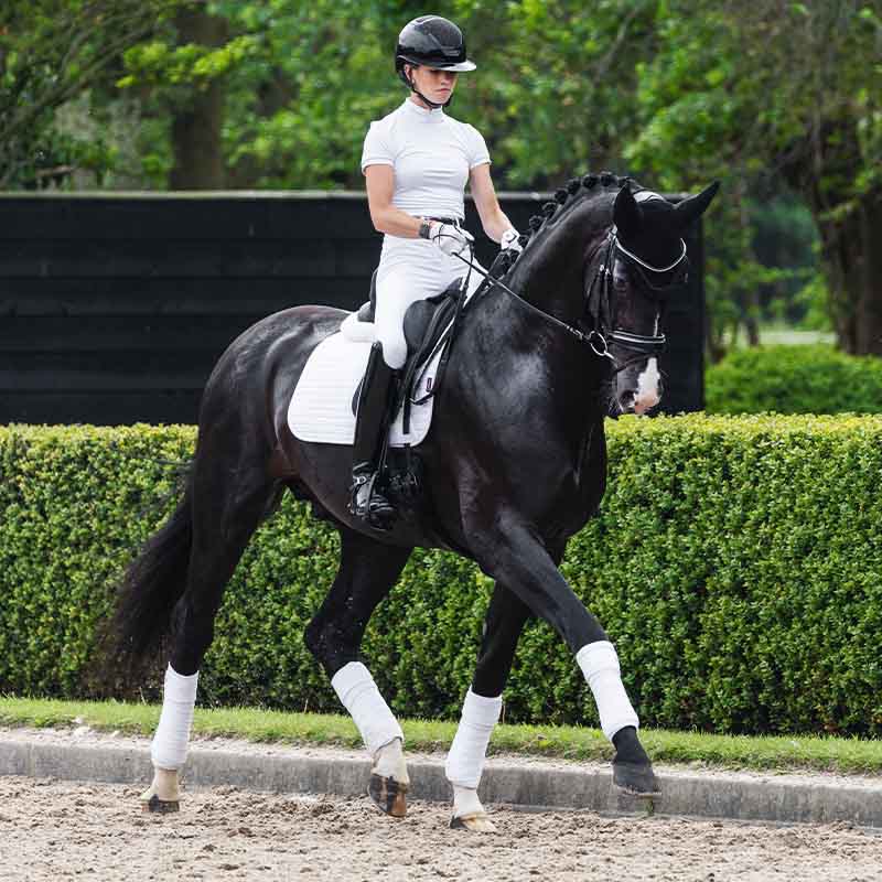 Wysokie wycięcie na kłąb, elastyczne zaczepy na D-ringi i ergonomiczny kształt zapewniają stabilne i anatomiczne dopasowanie pod siodłem. Luksusowa powierzchnia z efektem zamszu jest miękka, ale wytrzymała, a naturalna podszewka z bambusa reguluje pot i ciepło – nawet u koni z wrażliwą skórą.
