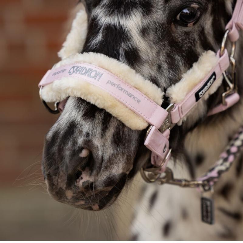 Kantar Eskadron Fauxfur Double Pin to wysokiej jakości kantar w pięknym różowym kolorze. Posiada błyszczącą tkaninę zewnętrzną i trwałą taśmę wewnętrzną dla dodatkowej wytrzymałości. Kantar wyposażony jest w podwójne sprzączki do symetrycznej regulacji i można go również regulować pod brodą. Zawiera łatwe w pielęgnacji, zdejmowane podszycia z futerka FauxFur na nosie, potylicy i paskach policzkowych dla dodatkowego komfortu.