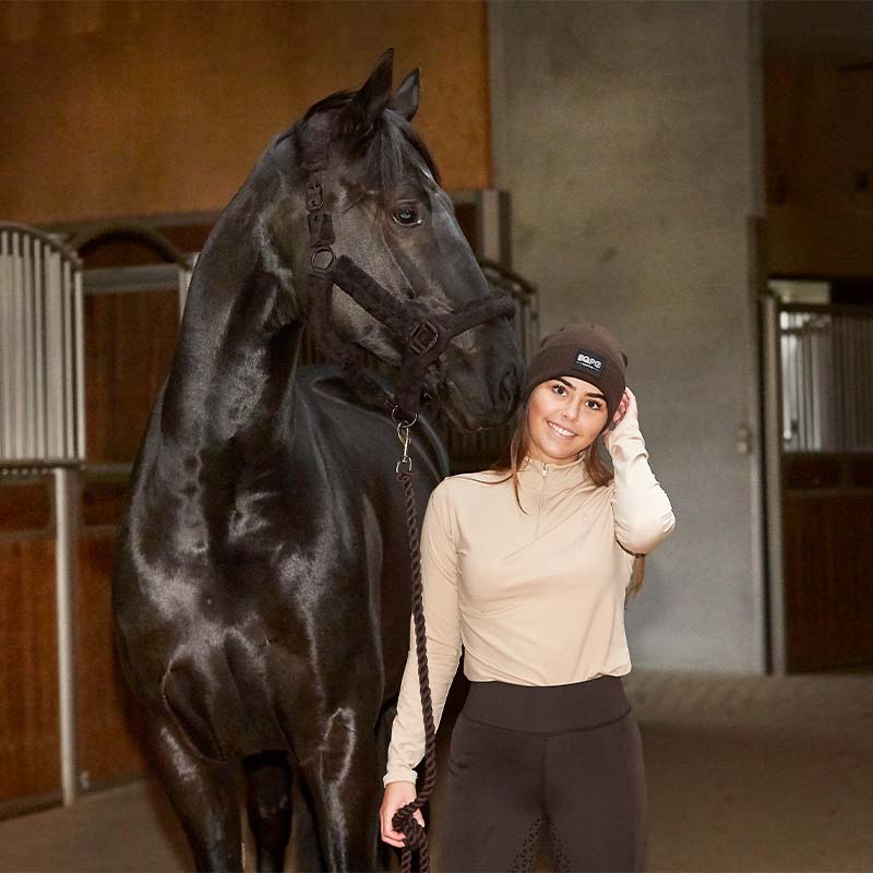 Wytrzymały i bardzo miękki kantar marki Horse Guard, wykończony przyjemnym w dotyku syntetycznym futerkiem, które zapewnia wysoki komfort użytkowania i chroni przed otarciami. Solidna konstrukcja z nylonu gwarantuje trwałość, a eleganckie, ciemne okucia nadają nowoczesny wygląd.