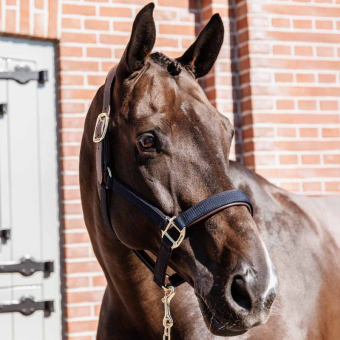 Anatomicznie wyprofilowany pasek potyliczny zapewnia większy komfort dla konia, a regulacja za pomocą dwóch sprzączek umożliwia precyzyjne dopasowanie. Kantar wyposażony jest również w tabliczkę, którą można odwrócić i wygrawerować.