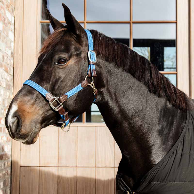 Elegancki kantar pleciony, wykonany z nylonu oraz wysokiej jakości skóry syntetycznej (100% przyjaznej dla zwierząt). Materiał nie wchłania wody ani zabrudzeń, co zwiększa trwałość i ułatwia pielęgnację. Skóra syntetyczna jest elastyczna i miękka już od pierwszego użycia, co przekłada się na wysoki komfort dla konia.