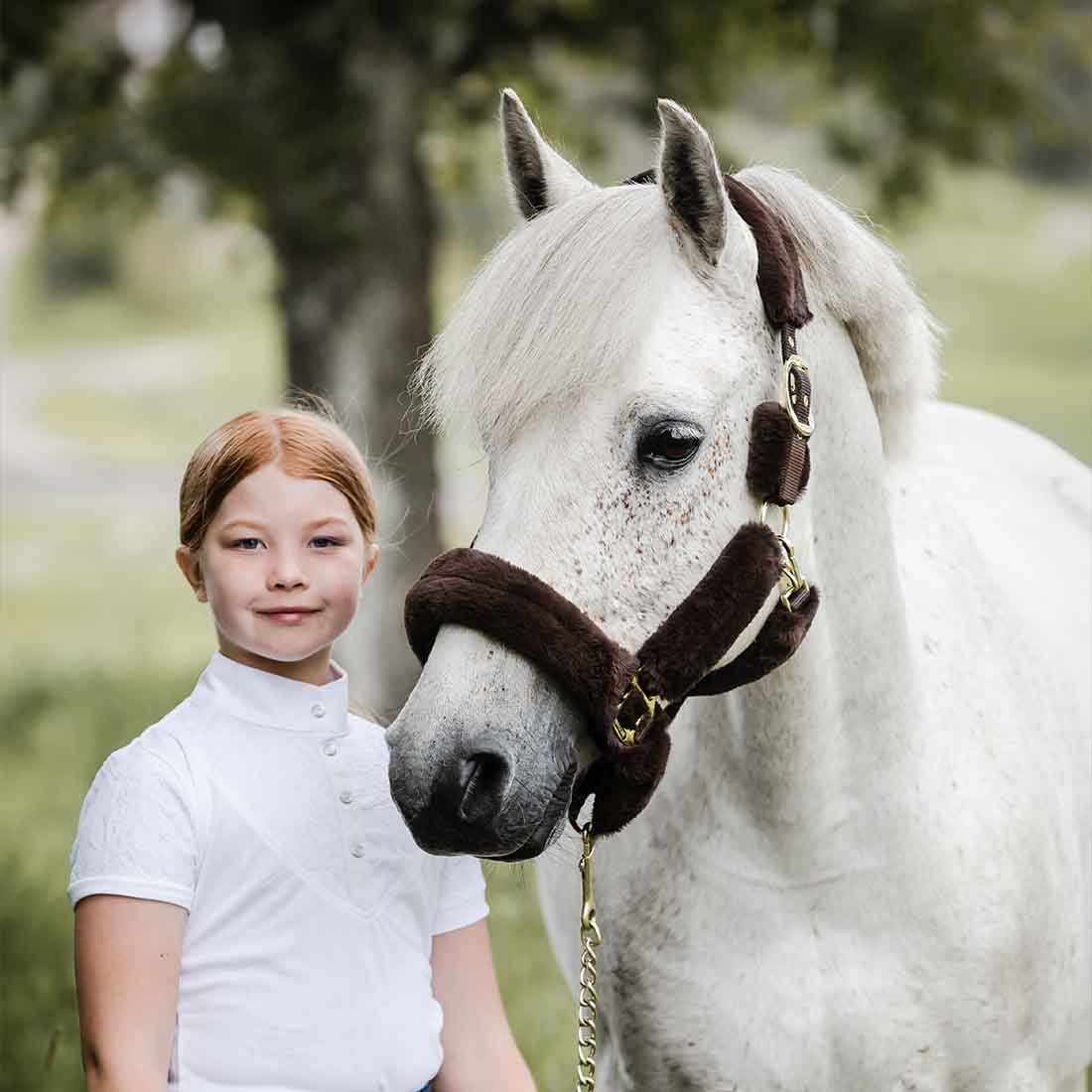 Bardzo miękki kantar marki Protector, wykończony przyjemnym w dotyku syntetycznym futerkiem, które zapewnia wysoki komfort noszenia i swobodę dla konia. Kantar jest regulowany po obu stronach paska potylicznego, co pozwala na równomierne i wygodne dopasowanie.