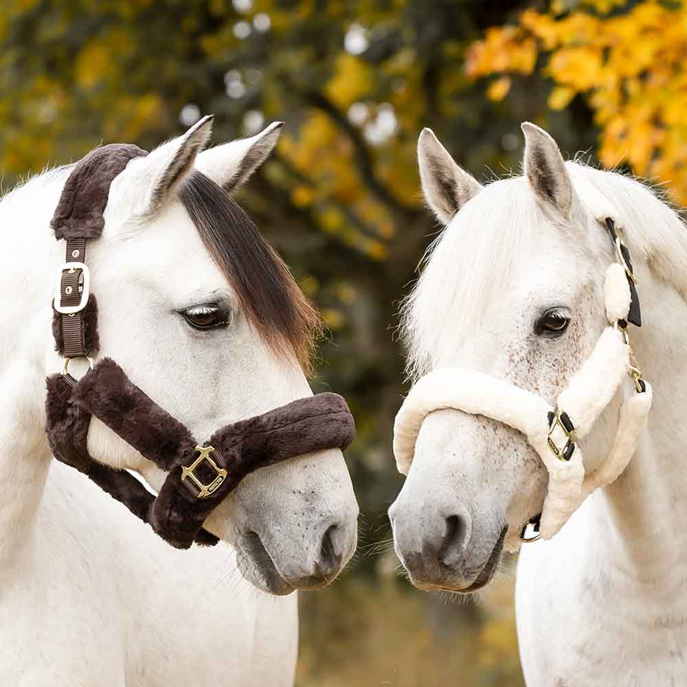 • Bardzo miękki kantar marki Protector, wykończony przyjemnym w dotyku syntetycznym futerkiem, które zapewnia wysoki komfort noszenia i swobodę dla konia. Kantar jest regulowany po obu stronach paska potylicznego, co pozwala na równomierne i wygodne dopasowanie.