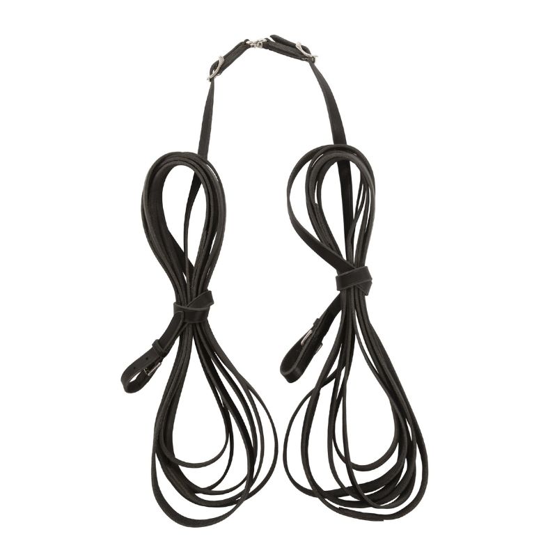 Długie wodze Lippo są specjalnie zaprojektowane do pracy z ziemi oraz powożenia. Wykonane z roślinnie garbowanej amerykańskiej skóry Supreme, oferują trwałość i jakość. Wodze są rozdzielne w środku i wyposażone w obrotowy mechanizm, co ułatwia ich obsługę. Z szerokością 18 mm i grubością 3 mm zapewniają wygodny i bezpieczny chwyt. Klasyczny czarny kolor pasuje do większości sprzętu.