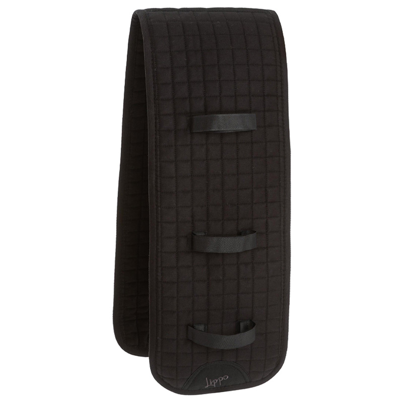 • Czarny pad do lonżowania wykonany z wytrzymałej bawełny, z bawełnianą wyściółką od wewnątrz. Wykończony lamówką na całym obwodzie oraz wzmocnieniem w dolnej części. Ozdobiony logo Lippo. Rozmiar uniwersalny.