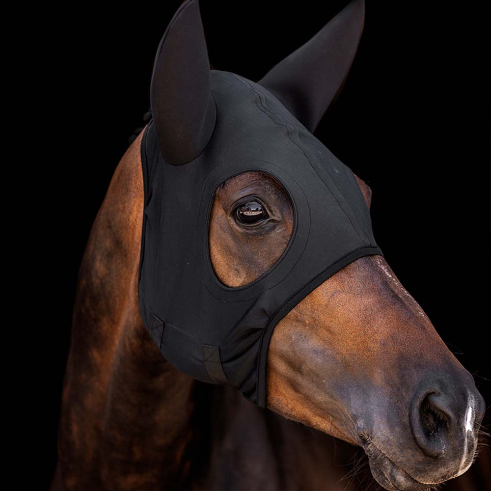 Maska działa uspokajająco dzięki efektowi delikatnego „otulenia”, co sprzyja koncentracji i komfortowi konia. Model ten został wyposażony w dźwiękochłonne uszy (Soundless), które redukują wpływ głośnych i nagłych dźwięków, minimalizując ryzyko spłoszenia.