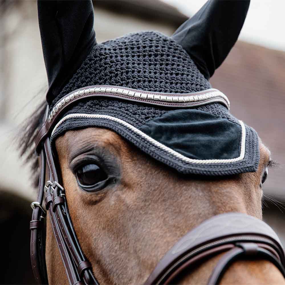 Ręcznie szydełkowana część główna gwarantuje trwałość, a elastyczne uszy dopasowują się do kształtu ucha, zapewniając wygodę i skuteczną ochronę przed owadami. Wydłużona część potyliczna zapobiega przesuwaniu się pod ogłowiem, utrzymując nauszniki na miejscu podczas jazdy.