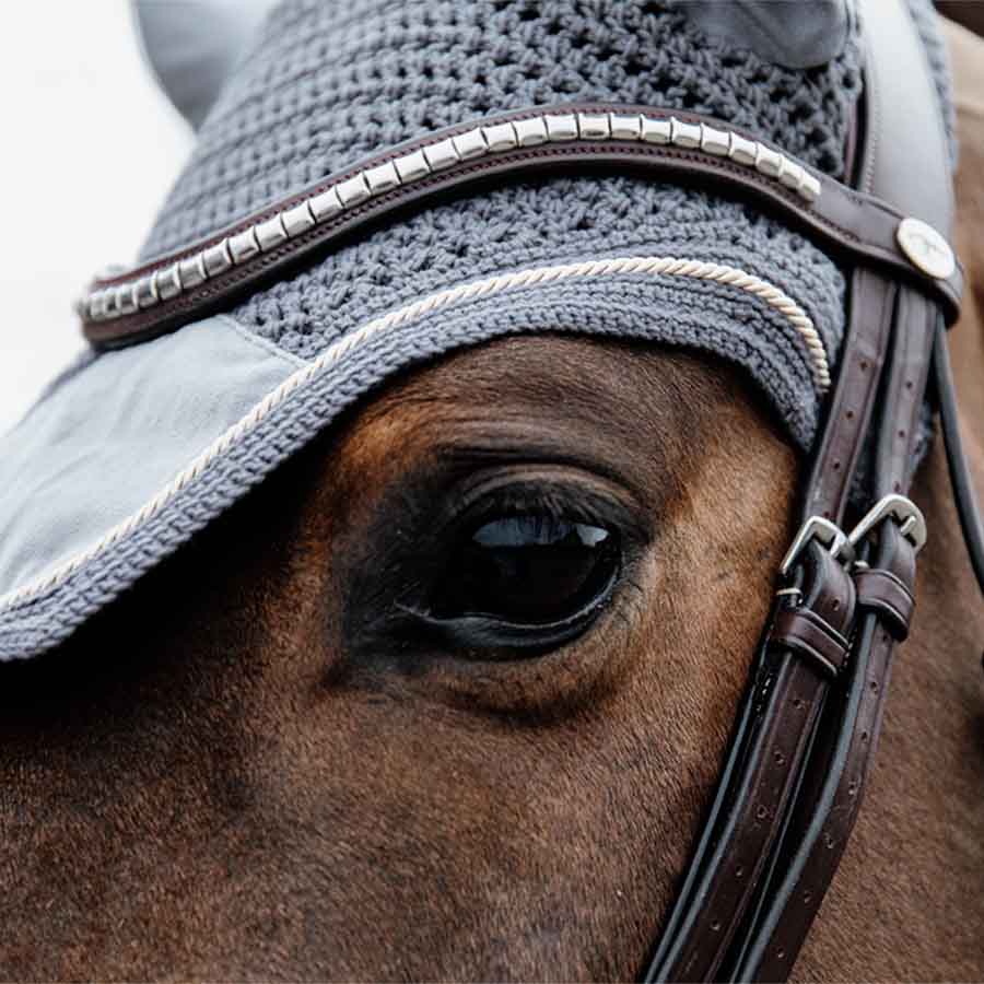 Ręcznie szydełkowana część główna gwarantuje trwałość, a elastyczne uszy dopasowują się do kształtu ucha, zapewniając wygodę i skuteczną ochronę przed owadami. Wydłużona część potyliczna zapobiega przesuwaniu się pod ogłowiem, utrzymując nauszniki na miejscu podczas jazdy.