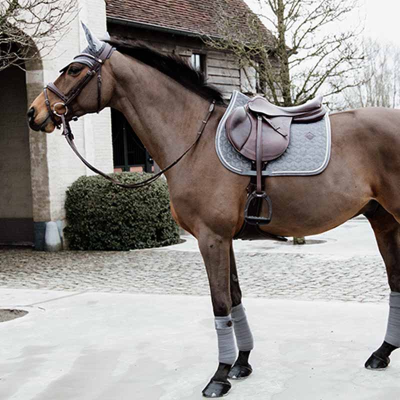 Minimalistyczny przód bez logo umożliwia personalizację poprzez haft. Model doskonale komponuje się z czaprakiem w tym samym stylu, tworząc spójny zestaw.