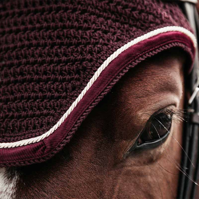 Ręcznie szydełkowana część główna zapewnia trwałość, a elastyczne uszy w kroju slim fit gwarantują komfort oraz skuteczną ochronę przed owadami. Wydłużona część potyliczna zapobiega przesuwaniu się nauszników pod ogłowiem, zapewniając stabilne dopasowanie.