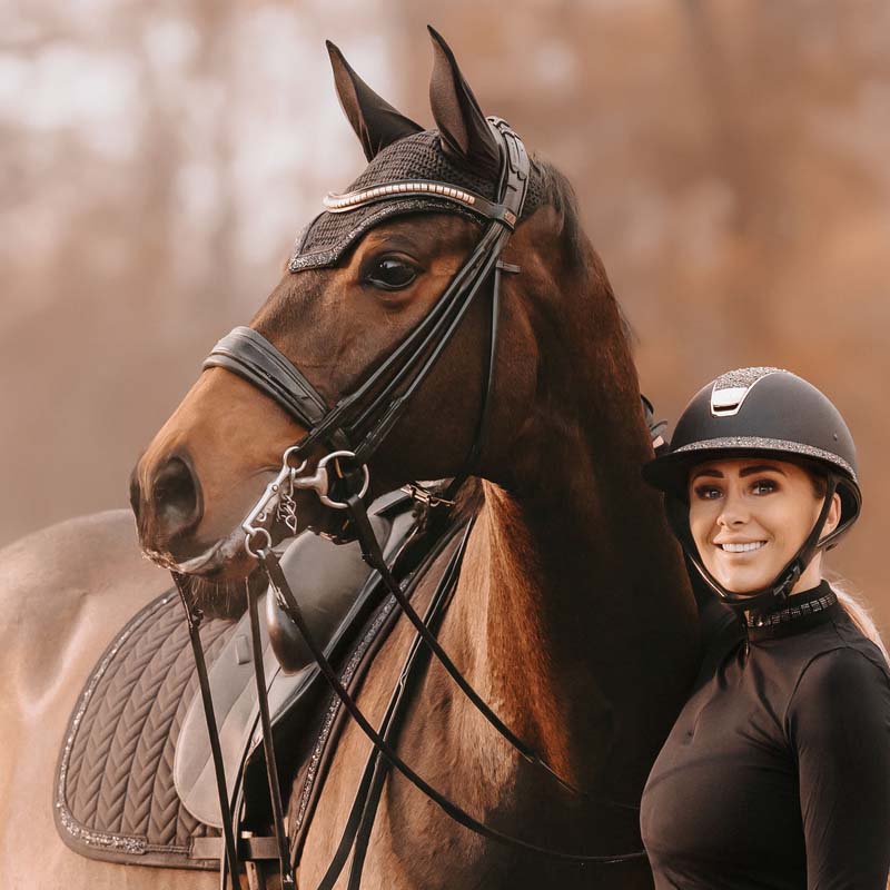 Ręcznie szydełkowane nauszniki dla konia Kentucky Wellington Glitter Stone łączą elegancki wygląd z funkcjonalnością. Nowoczesny, amerykański styl oraz subtelne zdobienie z błyszczącymi kamieniami sprawiają, że model wyróżnia się na tle klasycznych nauszników.