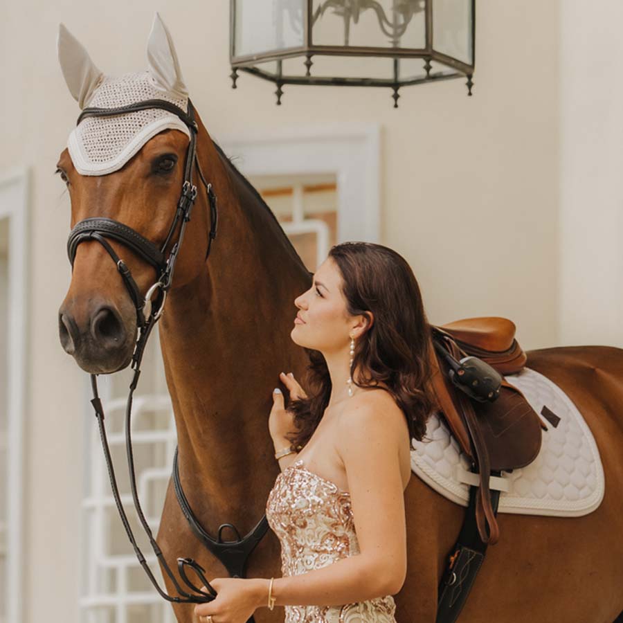 Eleganckie nauszniki dla konia Kentucky Wellington Plaited Cord to idealne uzupełnienie klasycznego zestawu jeździeckiego. Model skutecznie chroni uszy konia przed owadami podczas jazdy, łącząc funkcjonalność z ponadczasowym stylem.