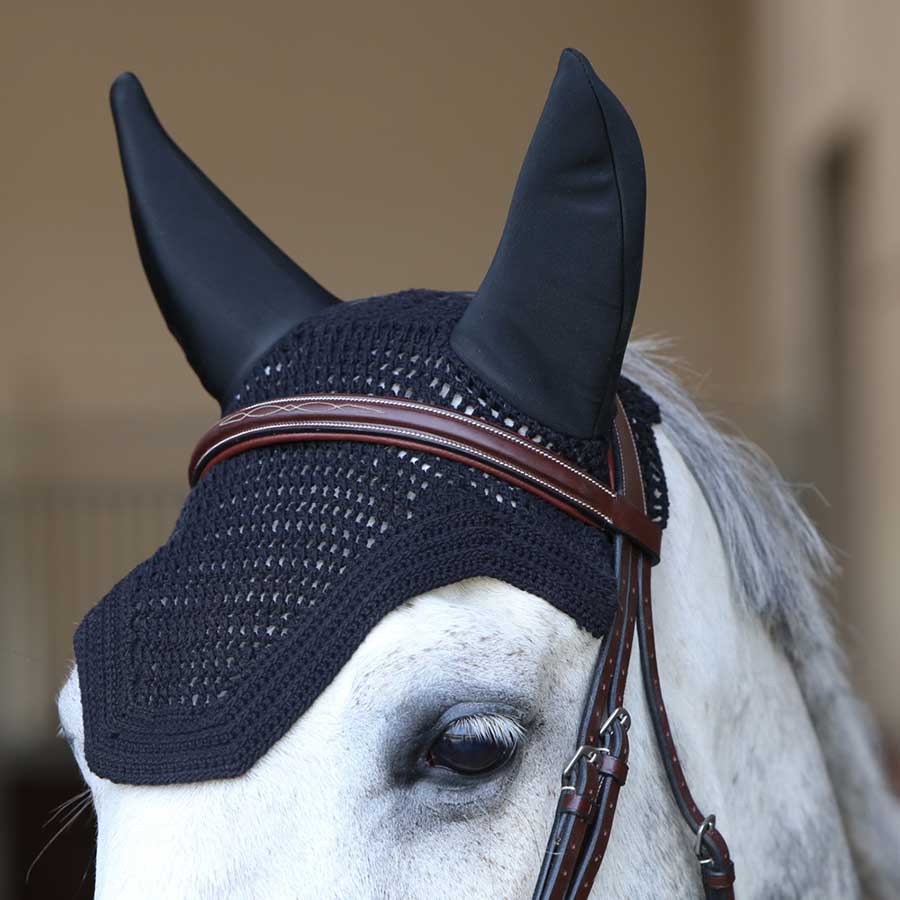 • Nauszniki Kentucky Wellington Soundless to połączenie klasycznego, „amerykańskiego” stylu z funkcją wyciszającą, która zwiększa komfort konia podczas jazdy. Model skutecznie chroni uszy zarówno przed owadami, jak i nadmiarem bodźców dźwiękowych, co jest szczególnie przydatne w trakcie zawodów i treningów.