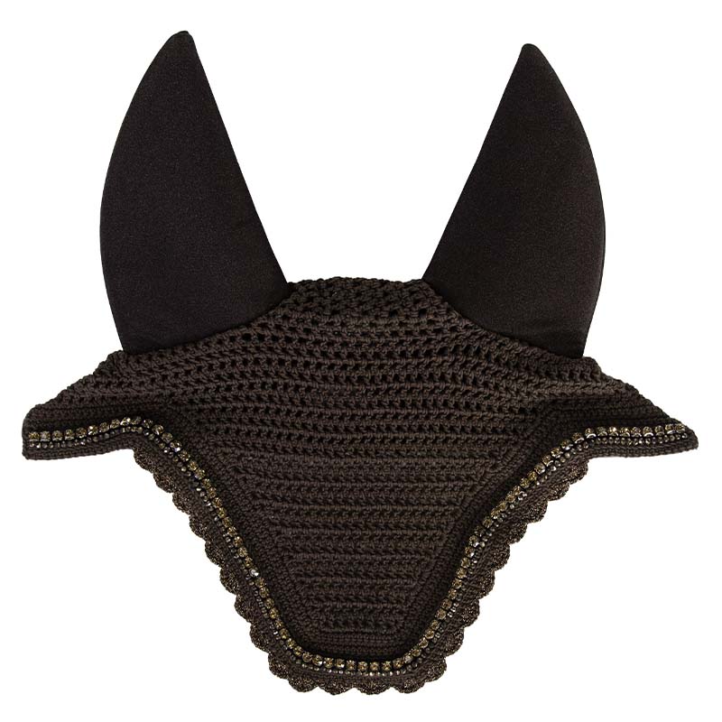Model wyposażony jest w wyściełane, wyciszające uszy, które pomagają ograniczyć hałas i zwiększają komfort konia, szczególnie w rozpraszającym otoczeniu. Jednocześnie skutecznie chronią przed owadami. Elastyczny materiał zapewnia dopasowanie, a wydłużona część potyliczna zapobiega przesuwaniu się pod ogłowiem.