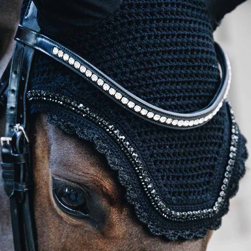 Eleganckie nauszniki dla konia Kentucky Wellington Stone & Pearl Soundless łączą nowoczesny, „amerykański” styl z wysoką jakością wykonania oraz funkcją wyciszającą. Ozdobione kamieniami i perłami w kolorze nauszników, stanowią wyjątkowy, luksusowy element wyposażenia.