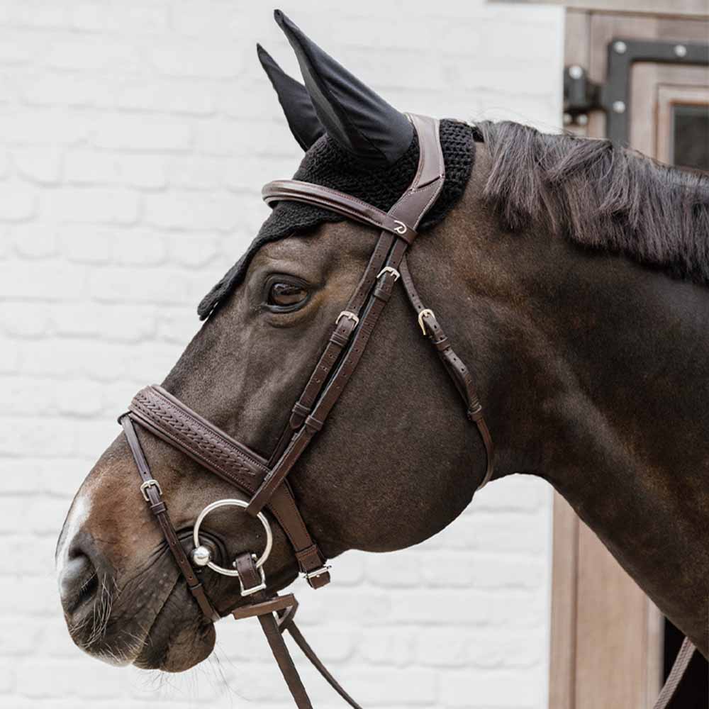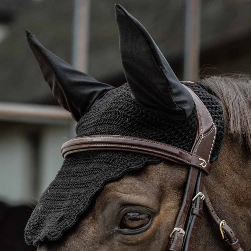 Luksusowe i stylowe nauszniki dla konia Kentucky Wellington Wave, które łączą elegancki wygląd z funkcjonalnością. Model skutecznie chroni uszy konia przed owadami, jednocześnie nadając zestawowi profesjonalnego charakteru.