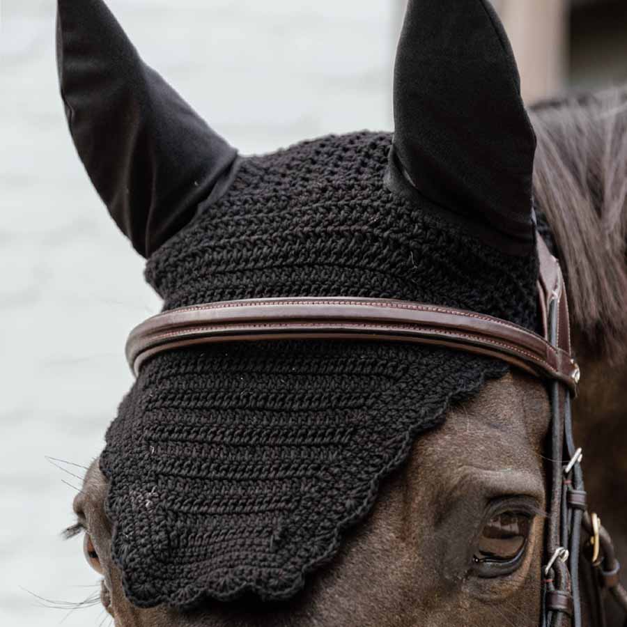 Ręcznie szydełkowana konstrukcja zapewnia trwałość i wysoką jakość wykonania, a elastyczne uszy w kroju slim fit gwarantują komfort oraz doskonałe dopasowanie. Wydłużona część potyliczna zapobiega przesuwaniu się nauszników pod ogłowiem, zapewniając stabilność podczas jazdy.