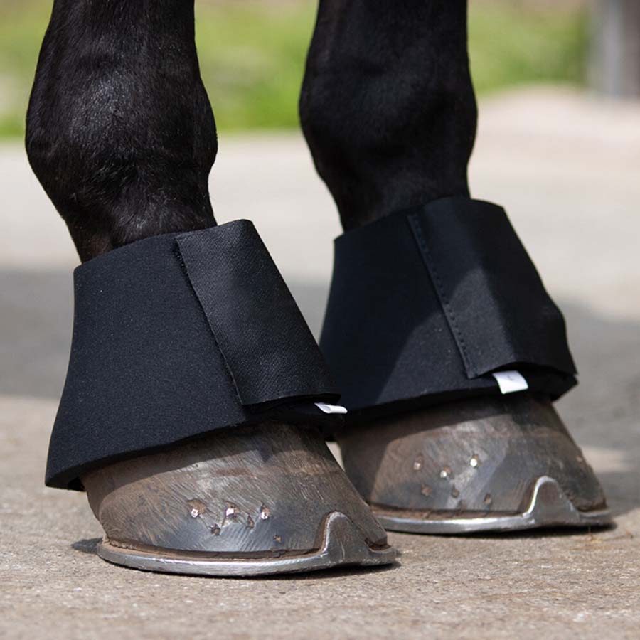 Wykonane z grubego neoprenu, zapewniają trwałość oraz dobre dopasowanie, jednocześnie chroniąc wrażliwe piętki (balle) przed urazami. Skutecznie pomagają zapobiegać zrzucaniu podków przez tylne nogi.