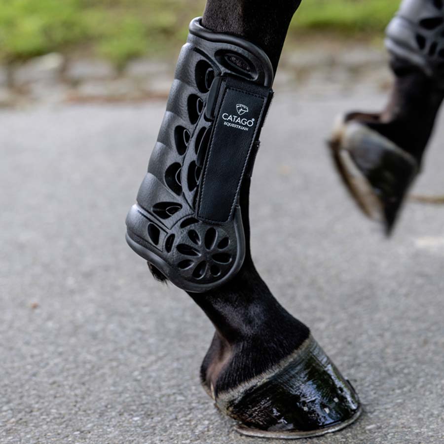 Ochraniacze skokowe przód Catago EVA GUMFLY wykonane są z innowacyjnego materiału antybakteryjnego, octanu etylenowo-winylowego (EVA). Ochraniacze te charakteryzują się bezszwowym i anatomicznym dopasowaniem z podwójnym zapięciem na rzep, co zapewnia wysoki komfort i skuteczną amortyzację wstrząsów. Są superlekkie, wodoodporne i wyposażone w otwory wentylacyjne dla optymalnego przepływu powietrza. Dodatkowo są łatwe do prania.