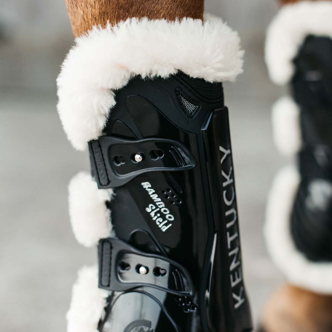 Osłony wykonane są z wytrzymałej czarnej powłoki TPU z wieloma otworami wentylacyjnymi w okolicy ścięgna oraz większą wentylacją w formie trójkątnej siatki, która zapewnia cyrkulację powietrza i zapobiega przegrzewaniu się. Obszar ścięgna jest wzmocniony osłoną bambusową, aby chronić konia przed uderzeniami. W stawach osłony nóg wyposażone są w miękką, naturalną gumę, aby zredukować tarcie, a wewnętrzne części osłon są wzmocnione dodatkową warstwą TPU dla większej trwałości. Podszewka składa się z siatki 3D Spacer, która ma górną i dolną warstwę z dzianiny poliestrowej oraz środkową warstwę z włókna, zapewniającą tłumienie wstrząsów i doskonałą oddychalność, wśród innych korzyści. Model z owczej skóry jest również pokryty wegańską, sztuczną owczą skórą dla dodatkowego komfortu. Naturalny kolor futra stanowi stylowy detal.