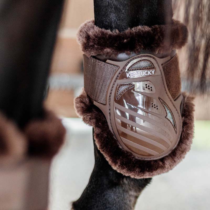 Ochraniacze skokowe tył Kentucky Vegan Sheepskin Young zostały zaprojektowane, aby zapewnić komfort i ochronę dla twojego konia. Wykonane są z mocnej skorupy TPU z wieloma otworami wentylacyjnymi i większą siateczką dla optymalnej wentylacji i chłodzenia. Poprawiony krój pozwala na maksymalną swobodę ruchu, co jest ważne dla młodych koni podczas treningów i zawodów. Wyściółka z wegańskiej owczej skóry dodaje dodatkowego komfortu i przepuszczalności powietrza.