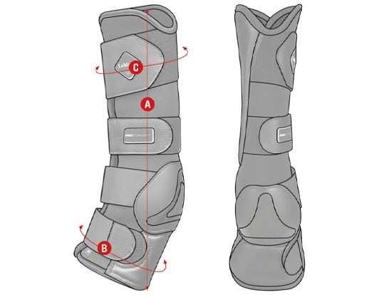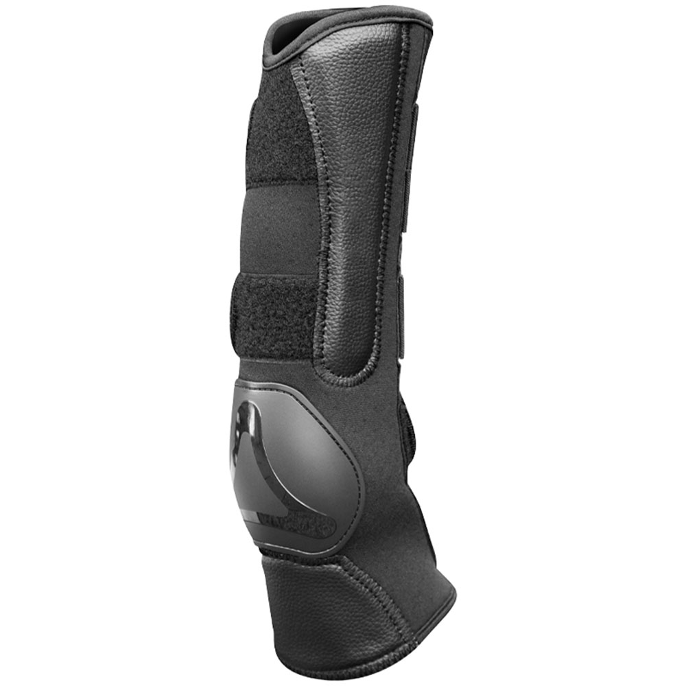 Ochraniacze wyposażone są w wytrzymałą osłonę (skid cap), która pomaga utrzymać je we właściwej pozycji za stawem. Elastyczne, skośne paski zapewniają bezpieczne i elastyczne dopasowanie bez ograniczania naturalnych ruchów konia.