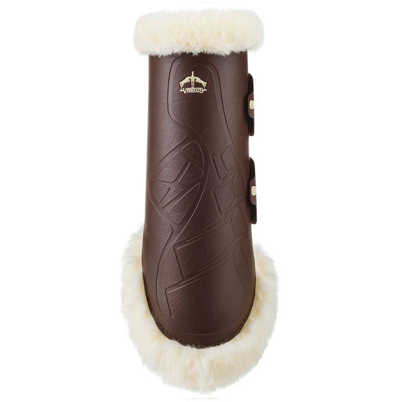 Wysokie buty do ujeżdżenia z tyłu z nowej serii STS firmy Veredus, Save the Sheep. Posiadają wewnętrzną warstwę syntetycznego owczego futra, co stanowi znaczną zaletę, ponieważ trwa o wiele dłużej, piasek i żwir nie przyklejają się w ten sam sposób, a do tego schną znacznie szybciej, żeby wymienić tylko kilka korzyści.