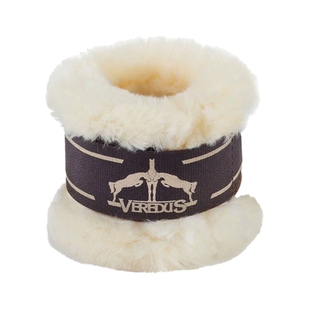 Brazowe ochraniacze skokowe tył z serii Veredus Save The Sheep z syntetyczną podszewką z owczej wełny, które oferują wiele zalet, takich jak zwiększona trwałość, zredukowane ryzyko otarć, szybsze schnięcie i wiele więcej!