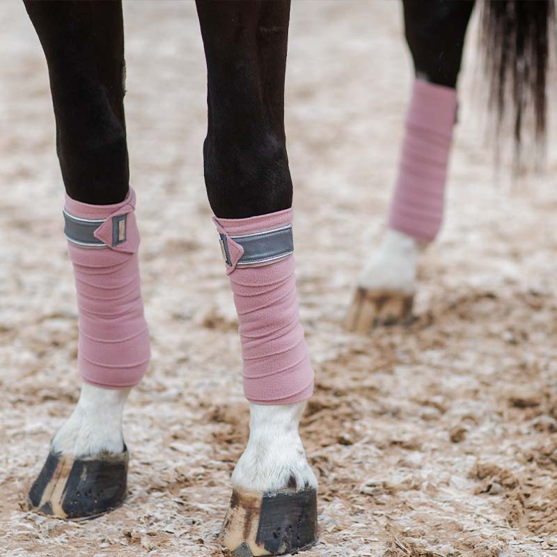 Twój koń zasługuje na to, co najlepsze, a te różowe bandaże od Equestrian Stockholm są zarówno stylowe, jak i funkcjonalne. Wykonane w 100% z nie-recyklingowanego poliestru, zapewniają dobrą ochronę nóg twojego konia podczas treningu i zawodów. Łatwo się je zakłada i oferują dobre dopasowanie, co zmniejsza ryzyko otarć i dyskomfortu. Z szarymi satynowymi detalami i srebrną naszywką Equestrian Stockholm, idealnie pasują do siodła i nauszników z kolekcji Pink, tworząc spójny i elegancki wygląd. Bandaże sprzedawane są w zestawach po cztery, co czyni je praktycznymi zarówno do treningu, jak i zawodów.