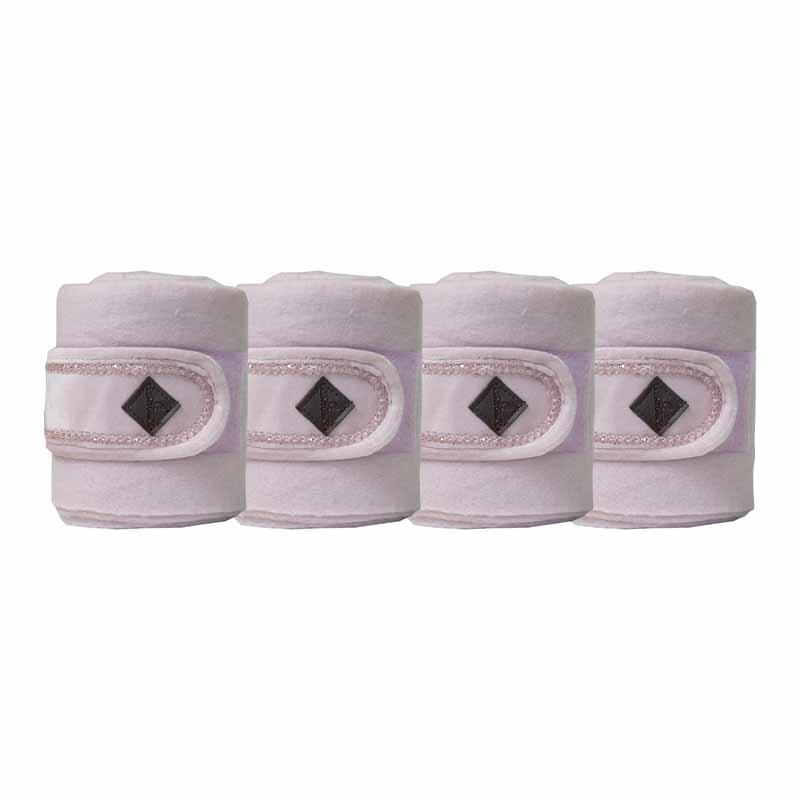 Wysokiej jakości bandaże z polaru z mocnym zapięciem na rzep i właściwościami zapobiegającymi mechaceniu, zapewniające długotrwałą trwałość. Doskonale wspierają ścięgna konia podczas użytkowania i stanowią stylowy dodatek dzięki stonowanej różowej kolorystyce oraz detalom z pereł i aksamitu w dopasowanych odcieniach, a także logo z sztucznej skóry w kolorze brązowym. Sprzedawane w opakowaniu po 4 sztuki, dostarczane w zapinanej torbie, idealnej do przechowywania lub transportu.