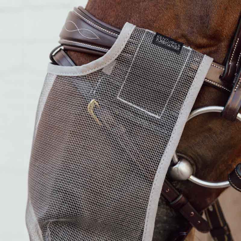 Siatka na nos przeciwko muchom od Kentucky chroni nos twojego konia przed muchami i innymi owadami. Jest wykonana z mocnej i oddychającej siatki, która ma anatomiczny kształt zapewniający dobre dopasowanie. Ta siatka na nos jest idealna dla koni, które są wyjątkowo wrażliwe na owady i może być stosowana codziennie podczas treningu, a także w zawodach. Nie przeszkadza wędzidłu ani w oddychaniu konia i może być używana także na pastwisku lub w stajni w połączeniu z kantarem.