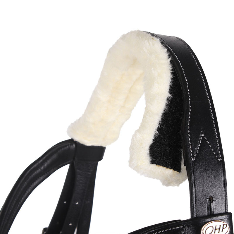• Anatomiczne ogłowie marki QHP zaprojektowane z myślą o komforcie konia. Model posiada specjalnie wyprofilowany nachrapnik oraz pasek potyliczny zapewniający dodatkową przestrzeń dla uszu. Ogłowie wyposażone jest w miękką skórzaną wyściółkę oraz odpinane podszycie z imitacji futra, dzięki czemu sprawdzi się szczególnie u koni z wrażliwą skórą lub skłonnością do otarć.
