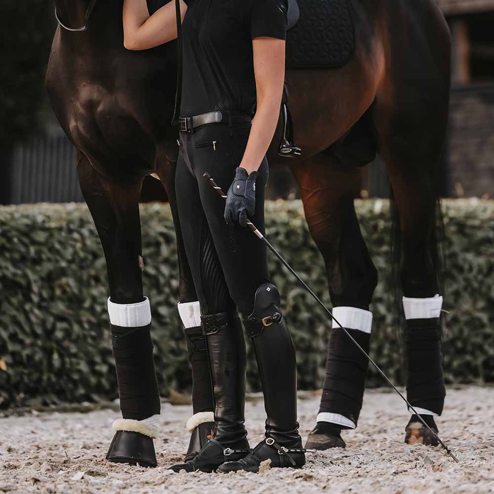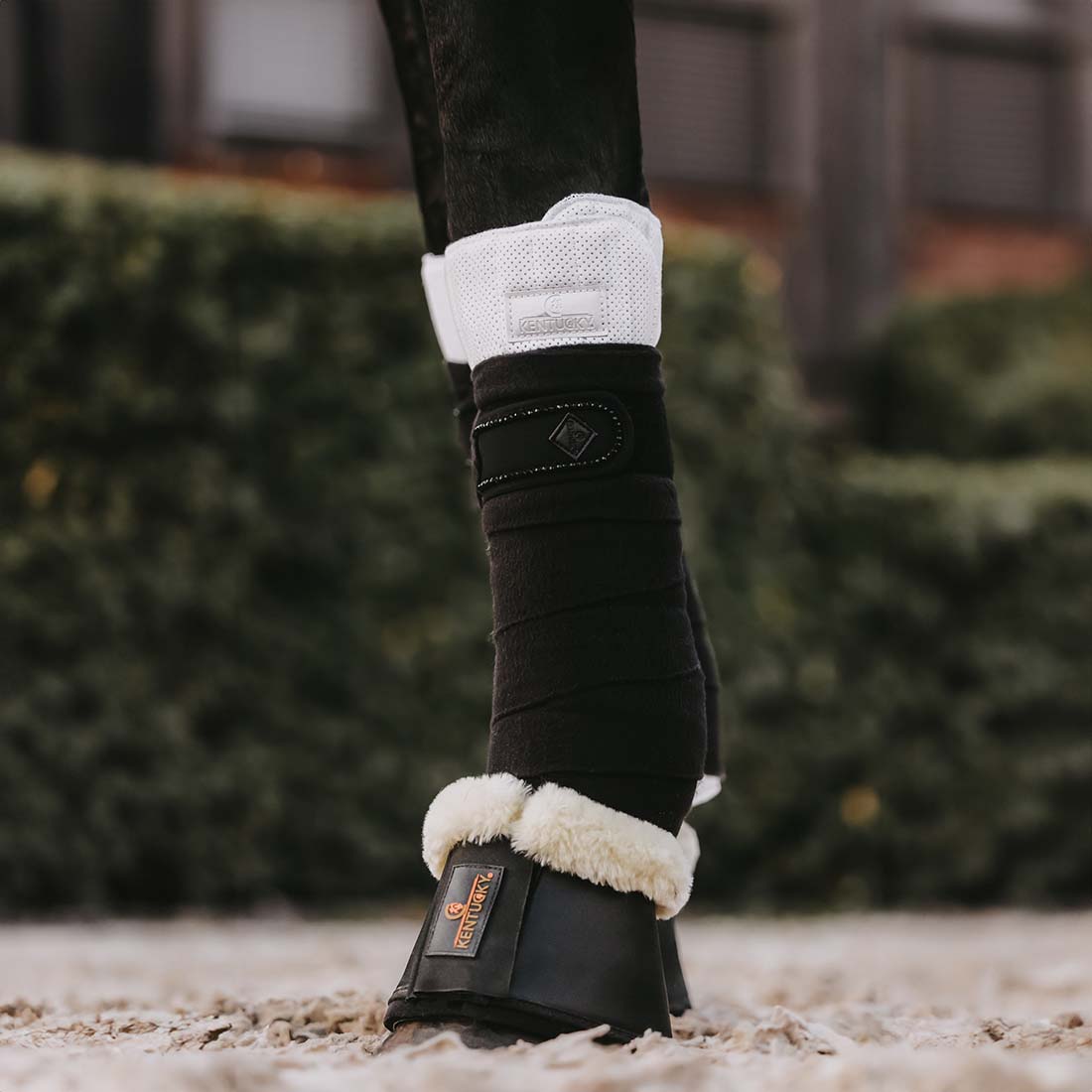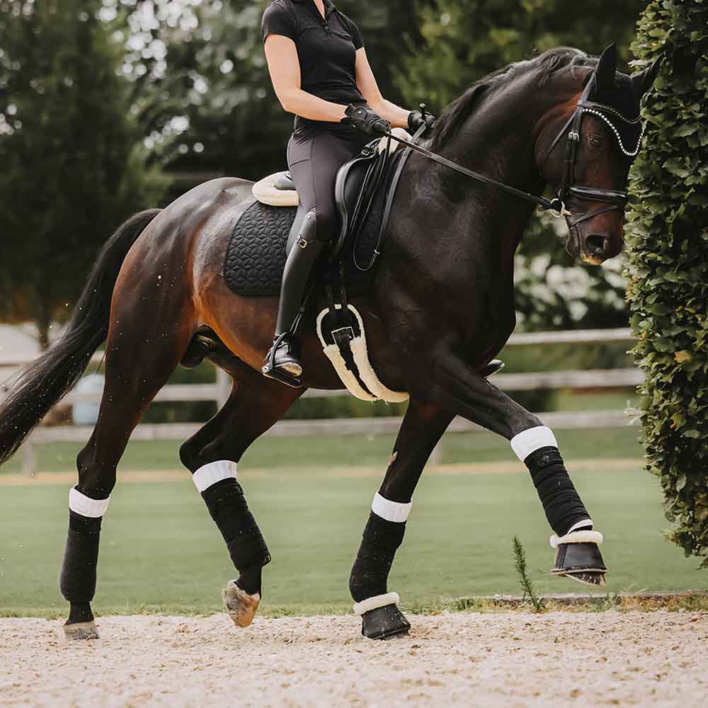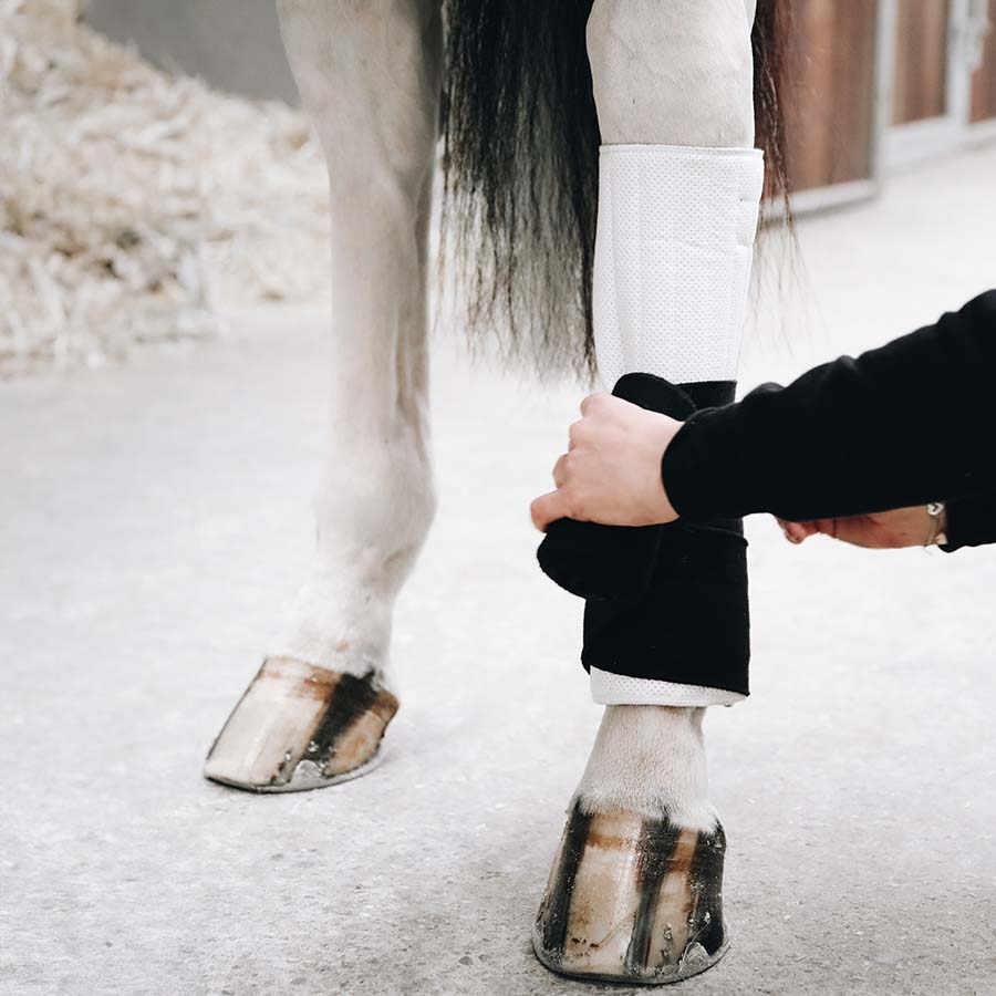Ochraniacze robocze Bandaże Absorbują utrzymują nogi w suchości i wchłaniają pot oraz uderzenia. Dzięki oddychającemu materiałowi, te podkładki oferują lepszą cyrkulację powietrza, aby zapobiec przegrzaniu. Nie zsuwają się i mają doskonałą amortyzację w kontakcie ze skórą. Mogą być używane z bandażami stajennymi, ale także jako opatrunek medyczny. Sprzedawane w zestawie czterech sztuk i łatwe do pielęgnacji, są specjalnie zaprojektowane do prania w pralce w temperaturze 30°C (bez suszarki).