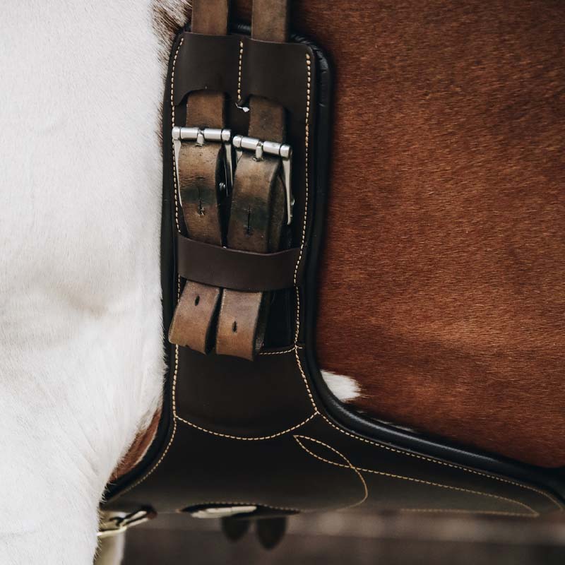 Popręg skokowy z fartuchem marki Kentucky Horsewear zaprojektowany z myślą o komforcie i bezpieczeństwie podczas jazdy, szczególnie w skokach. Anatomiczny kształt pozwala popręgowi naturalnie dopasować się do ruchów konia i zmniejsza ryzyko urazów spowodowanych przez podkowy lub ostrogi.