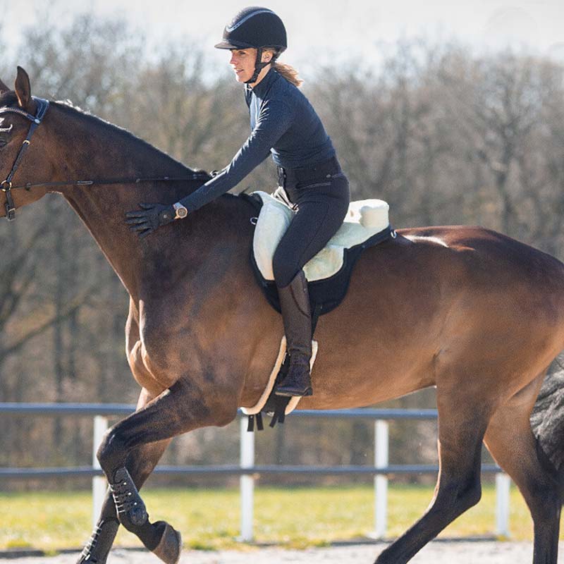 Jedź w wolności z tym super miękkim padem bezsiodłowym! Anatomiczny kształt, warstwa antypoślizgowa i system V-girda zapewniają dobrą pozycję na twoim koniu. Pad jest wyposażony w zdejmowany sztuczny futerko i solidne hocki dla miękkiego, stabilnego siedzenia. To nie tylko poprawia twoje niezależne siedzenie, ale także zwiększa twoje poczucie jazdy i zaufanie między tobą a twoim koniem.