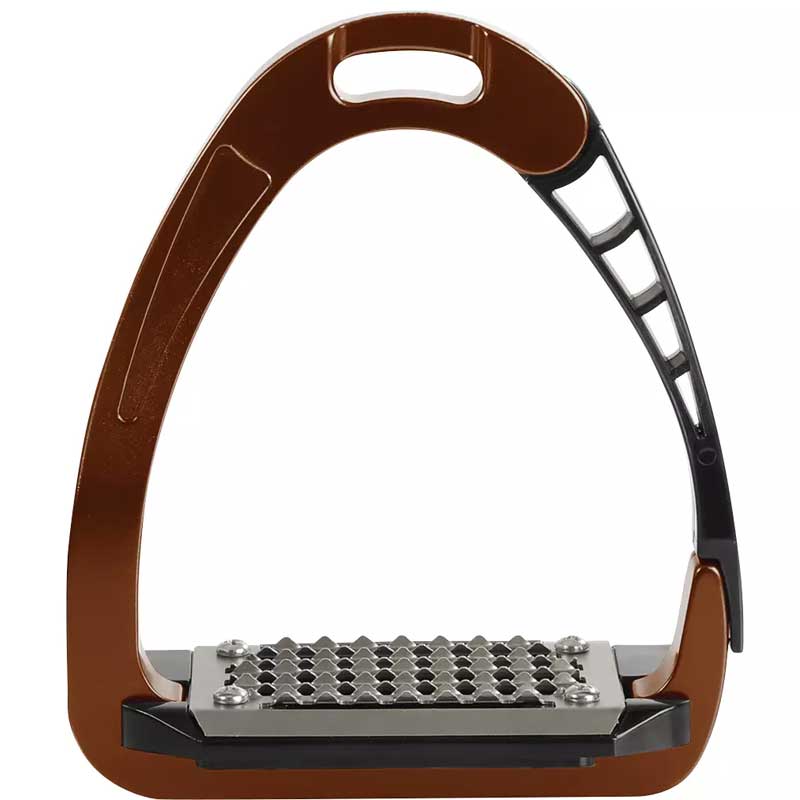 Dzięki zastosowaniu unikalnej kombinacji materiałów model Arena jest mniej sztywny niż klasyczne aluminiowe strzemiona, co zapewnia delikatną elastyczność i lepszą amortyzację. Pomaga to zmniejszyć obciążenie kolan, pleców i stawów skokowych podczas jazdy.