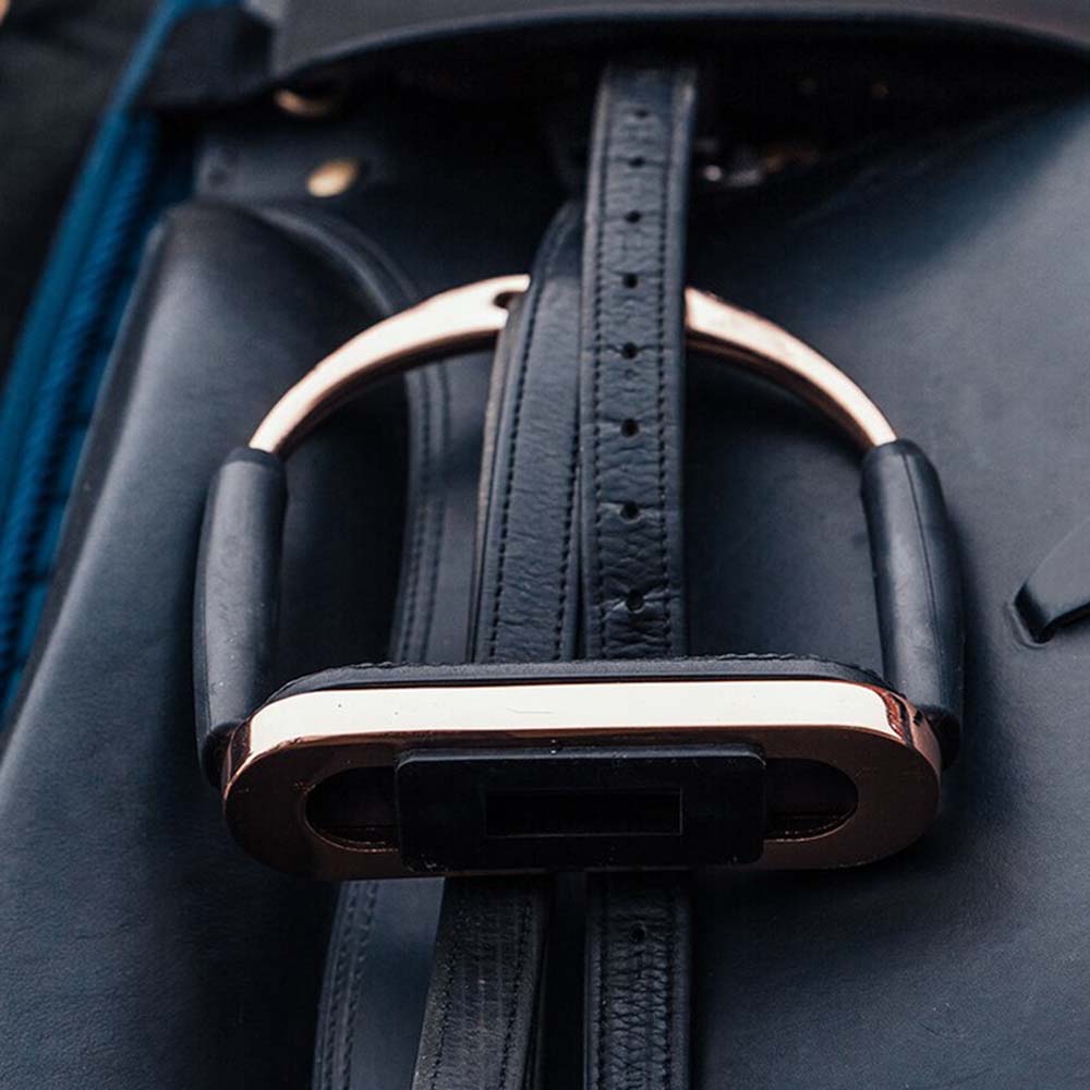 Wykonane ze stali nierdzewnej dla długiej trwałości, wyposażone w czarne gumowe wkładki dla lepszej stabilizacji i przyczepności w strzemieniu.